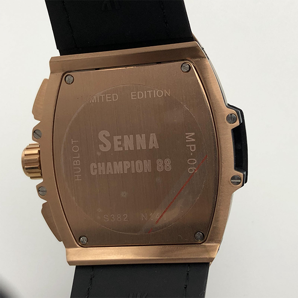 Bezel: Satin-finished, polished, microblasted black ceramic with 6 H-shaped titanium screws